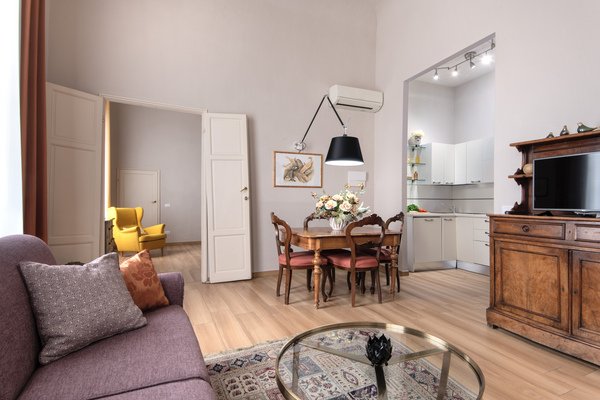 Overlooking Ricasoli pedestrian street with a view of the Brunelleschi’s dome, the Classic apartment is the perfect choice for those who require a spacious and bright apartment at the Best price!