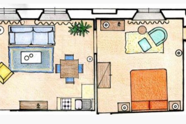 Thanks to the large bedroom and spacious dining area with the sofabed for 2 people and fully equipped kitchen, the classic apartments are perfect for a couple or groups .